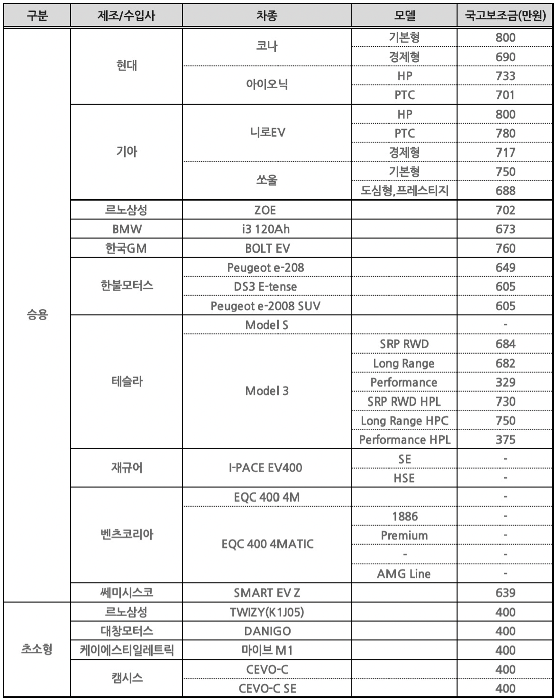 [현재 구매가능한 승용/초소형 전기차]