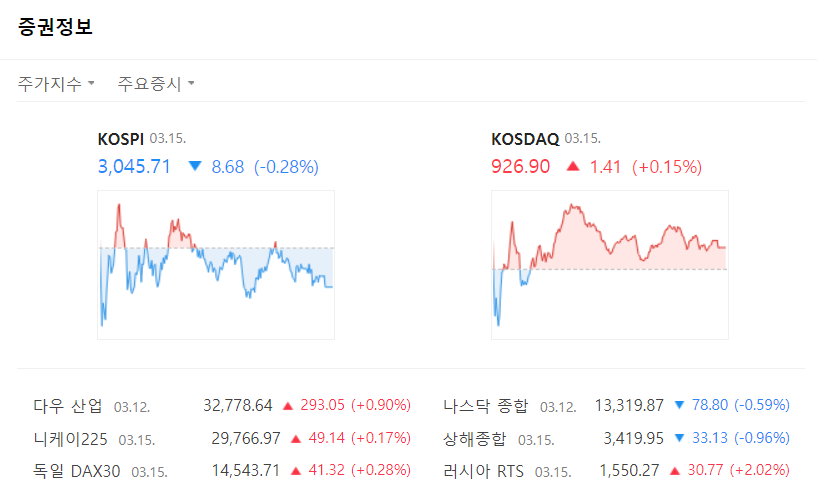 1. 코스피 & 코스닥 (종가기준 _ 3월15일 금요일)