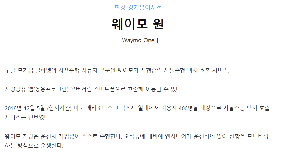 기사엔 웨이모라고 나왔는데 정확힌 웨이모 원 인것같다.