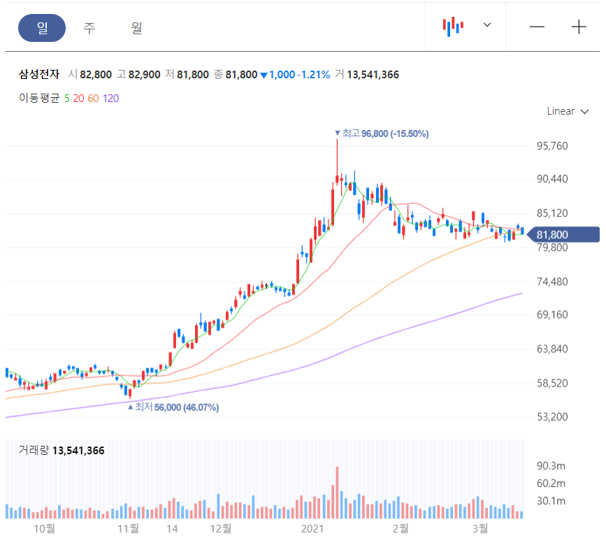 오늘도 소폭 하락하며 삼성전자는 그렇게 희망고문을 이어갔다.