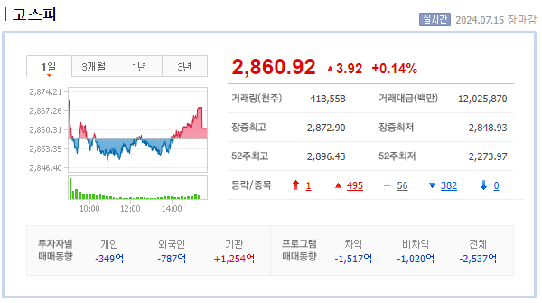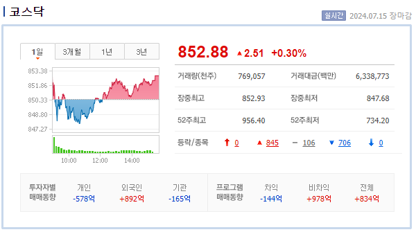 | [주식 07/10(수)] 코스피 2502.37(+5.66%)&코스닥 839.45(+7.34%) (2) | 2024.07.10 |