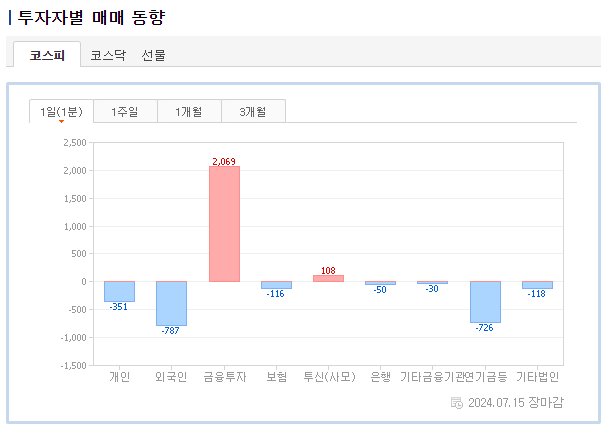 코스피는 금융투자, 코스피는 외국인 매수 강세..