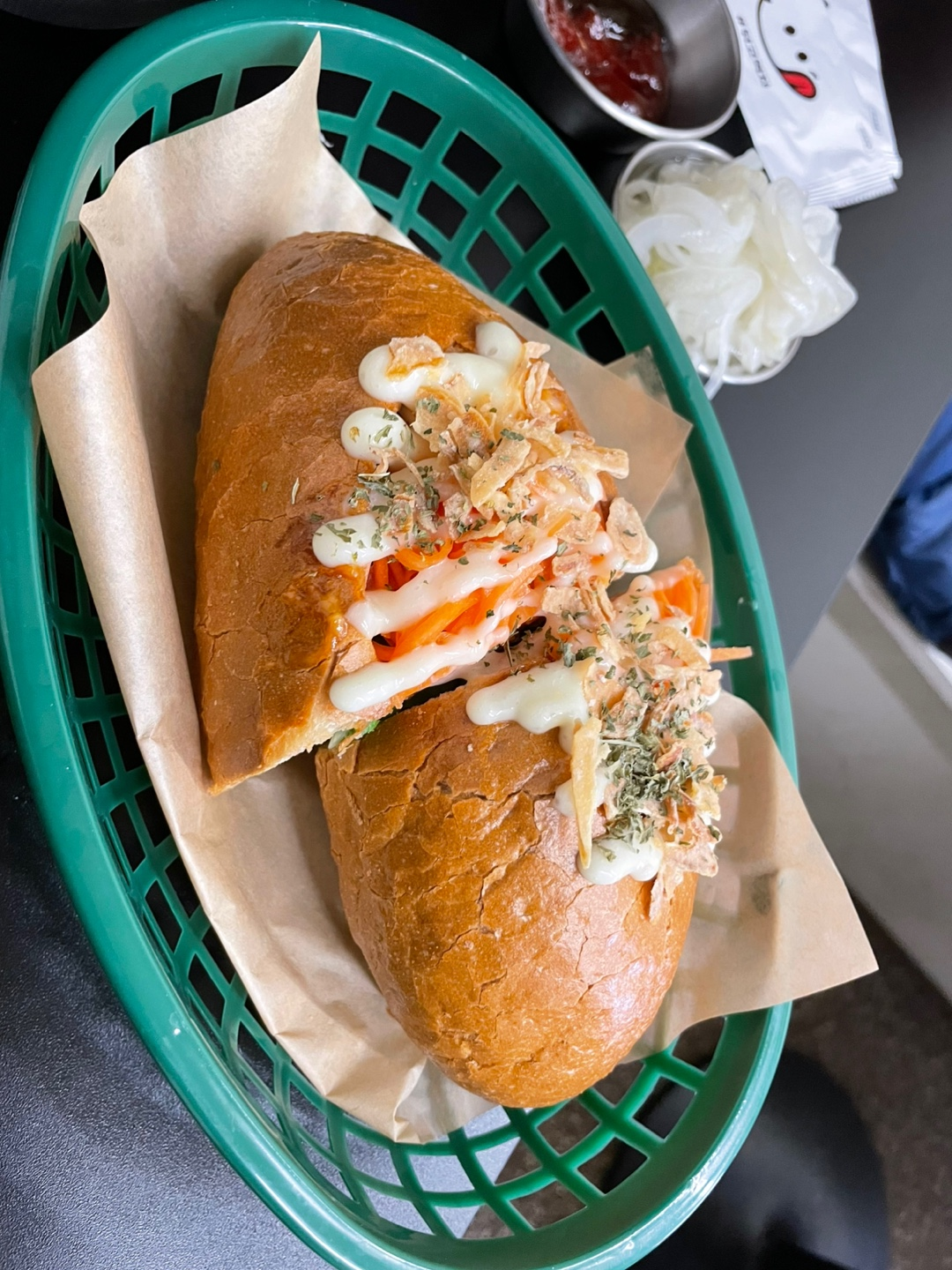 바케트가 어찌나 바삭한지, 그리고 안에 있는 재료도 맛있음.