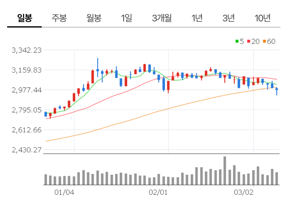 ↓ 아직까지 잘 버티고 있는것이 사실임. 21년을 2944.45 포인트로 시작했으니 오히려 아직 플러스이다.